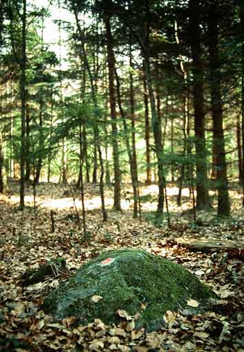 | 587492/220523 | 1,15 x 1,0 x 0,3 | 0,13 | Schieferiger Chlorit-Muskowit-Gneis; Val de Bagnes? | 25 m westlich Forsthütte; niederer, kuppenförmiger Stein |
